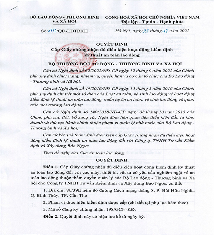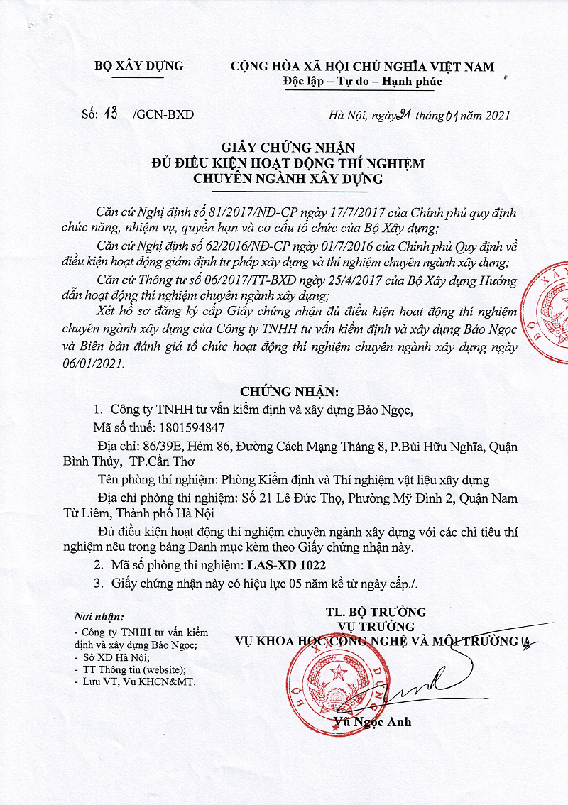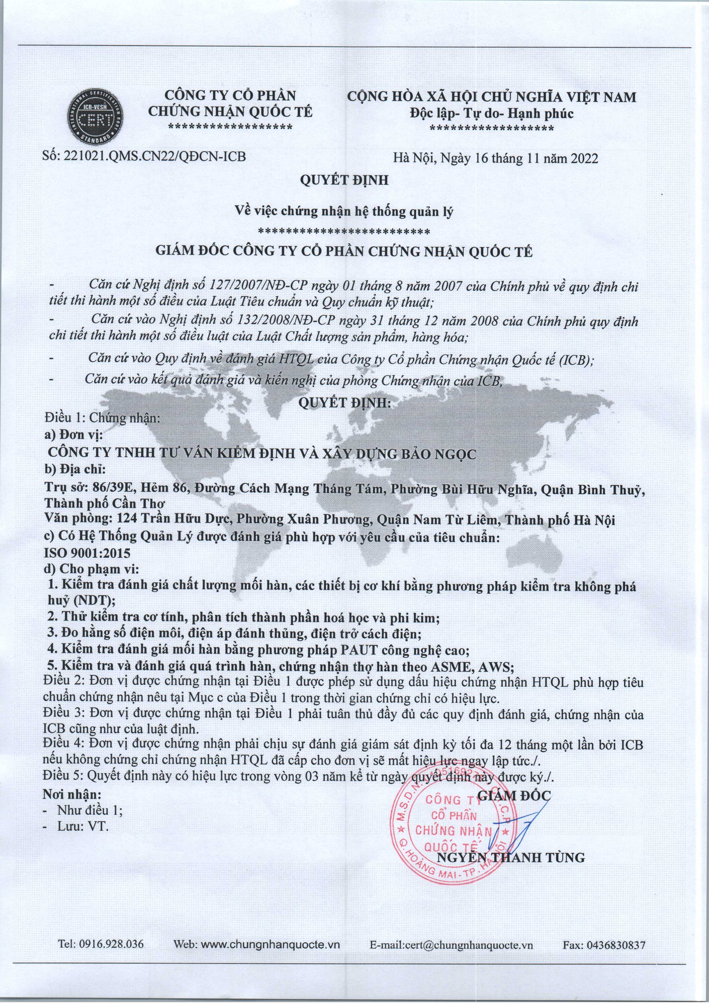 CÔNG TY TNHH TƯ VẤN KIỂM ĐỊNH VÀ XÂY DỰNG BẢO NGỌC